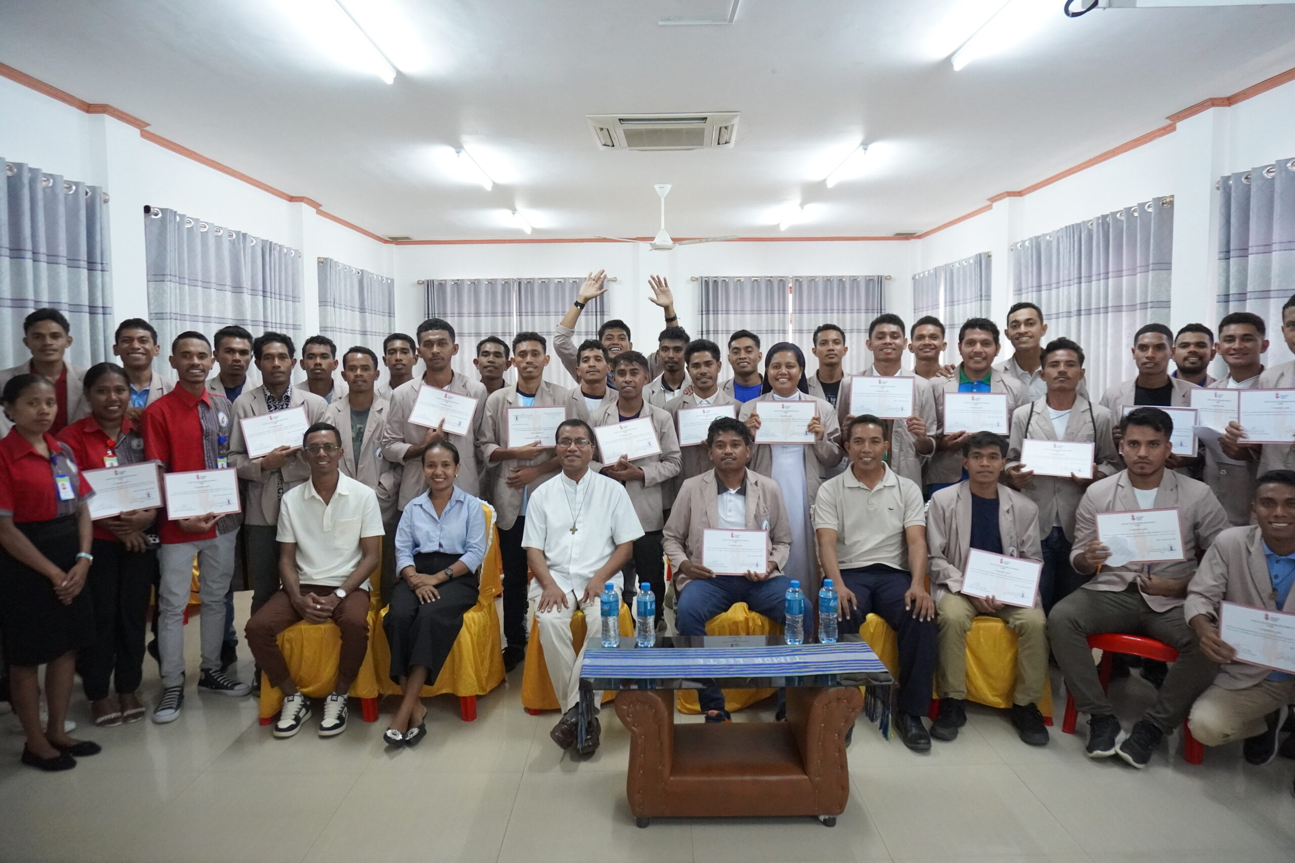 Dili, April 23, 2025 A total of 43 students and staff members of the Instituto Superior Dom Bosco (ISDB) received certificates on Wednesday afternoon after successfully completing a semester-long Portuguese language course. The ceremony was held from 14:30 to 15:30 in the Great Hall of ISDB. This language program, conducted during the second semester of the 2024 scholastic year, was made possible through a fruitful collaboration between ISDB, the Government of Timor-Leste—who provided the necessary funding—and a Portuguese institution dedicated to promoting the Portuguese language. The course consisted of three classes: two beginner-level (A1) groups and one elementary-level (A2) group, taught by Mr. Helder, Ms. Sabina, and Fr. Casimiro, who also coordinated the program. The primary aim of the course was to support students in preparing their final theses in Portuguese and to empower staff with the ability to speak and write in the national language of Timor-Leste. Initially, the Embassy of Portugal in Timor-Leste was scheduled to take part in the ceremony and officially hand over the certificates to the participants, symbolizing the strong cooperation between ISDB and Portuguese institutions in promoting the Portuguese language. Unfortunately, the ambassador had to cancel her attendance at the last moment due to urgent commitments. During the event, Fr. Casimiro emphasized the importance of the course for both students and staff, while the Rector of ISDB underlined the broader significance of the Portuguese language in academic and national contexts in Timor-Leste. This initiative reflects ISDB’s ongoing dedication to fostering bilingual education and strengthening academic capabilities through language development.